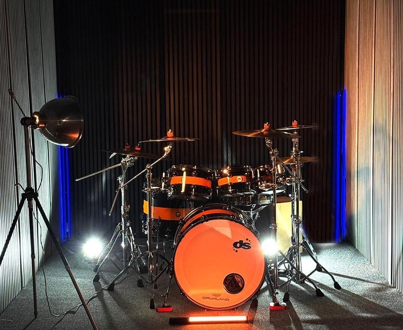 Eén van de drumstellen waar les op wordt gegeven. De lesdrumstellen zijn meer dan compleet voor gevorderde drummers. De bekkens zijn van HHX legacy/ performance symbals. De snare is cutsomized en van aluminium.